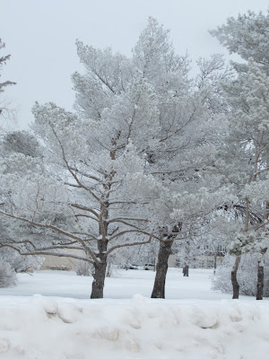 On one of my particularly dark days, I had lunch with Nikka in her apartment---always a respite, partly because we talk of anything except my mood. As I went down her stairs, which are outside (she lives in the second storey apartment of an old house), I slipped down the last five of her snowy steps, losing both my shoes and badly bruising the leg that was behind me when I slipped. "Shit!" I yelled at the universe, at the clouds, at whoever would listen. "I can't do this! I've had enough!" In my stocking feet, I stumbled through six inches of snow under her stairs where I found both my shoes. I got into the car to cry. You have to realize that falling (again) sets off my whole sense that my body is becoming incompetent, the worst symptom being vertigo that leads people, I am quite sure, to believe I am perpetually drunk. But my little camera was in the cup holder because my task for that afternoon was to take photographs of the startling hoarfrost. So I drove into Wascana Park and was stopped--pulled up--by beauty. What is this earth and her nature that gives us such beauty?